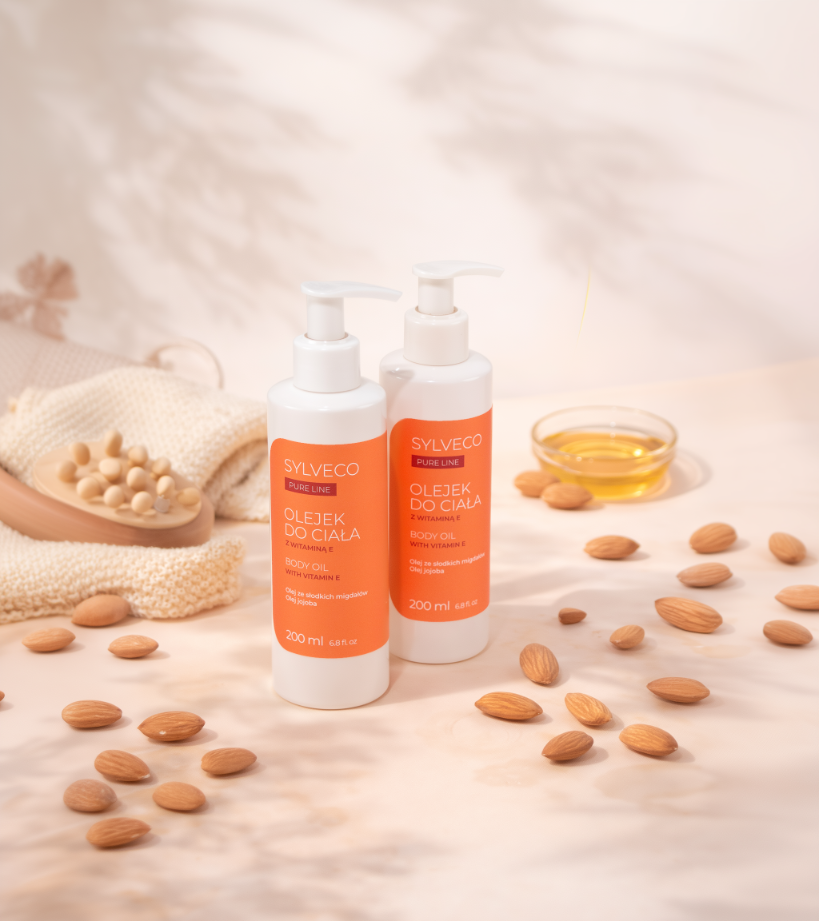 SYLVECO PURE LINE Massasjeolje kombinerer nærende planteoljer som mandelolje, druekjerneolje, aprikosolje og avokadoolje, beriket med E-vitamin, for å gi huden mykhet og smidighet. Den lette konsistensen gjør massasjen enkel å utføre, samtidig som huden får intens fuktighet og pleie.