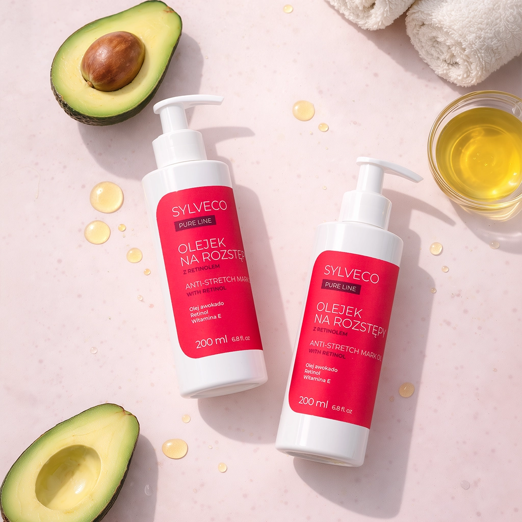 SYLVECO PURE LINE Strekkmerkeolje er en intensivt nærende olje utviklet for hud som er utsatt for tap av fasthet. Den kombinerer naturlige planteoljer som druekjerneolje, mandelolje og avokadoolje for å mykgjøre og pleie huden, samtidig som retinol stimulerer hudens regenerering. E-vitamin fungerer som en antioksidant og beskytter huden mot tap av elastisitet.