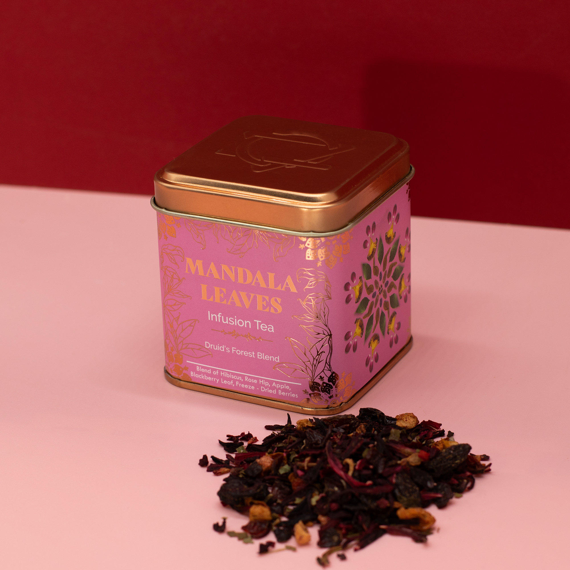 AWGIFTS Druid’s Forest Blend Te kombinerer hibiskus, nype, eple, bjørnebærblad og frysetørkede bær for å skape en rik og aromatisk fruktinfusjon med naturlig intens farge. Den bærpregede smaken gir en balansert sødme og friskhet, helt uten koffein.
