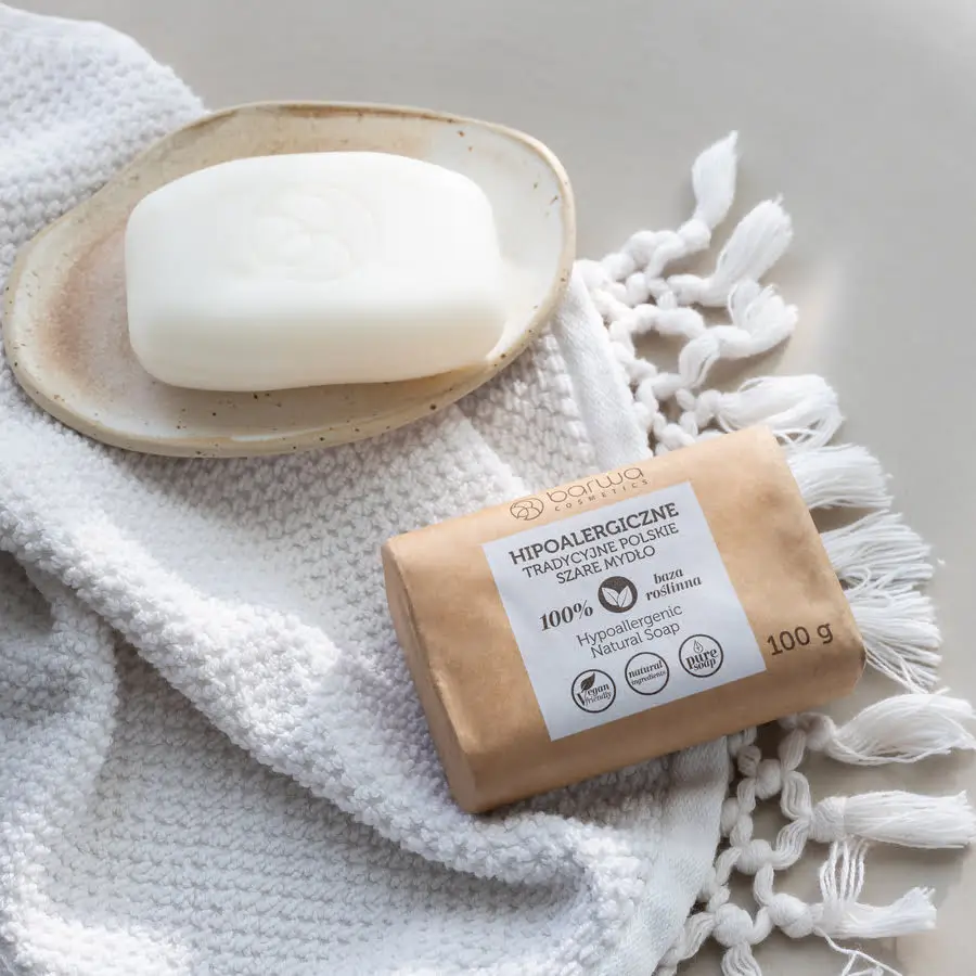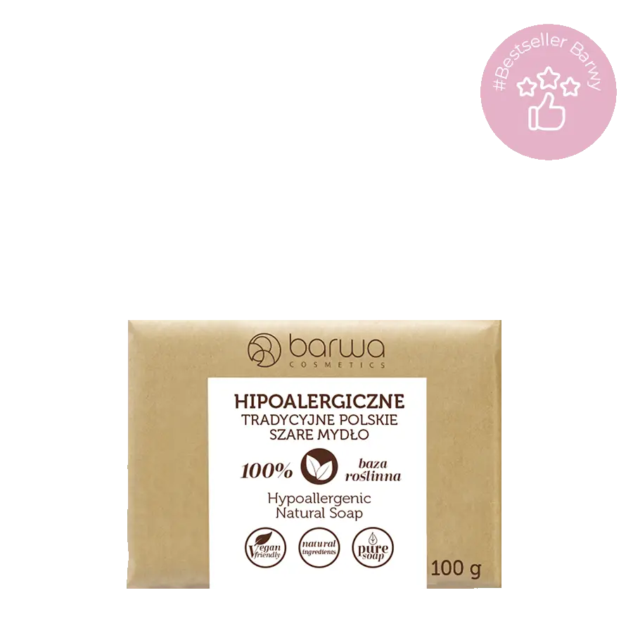 Barwa tradisjonell polsk grå såpe er et naturlig og mildt produkt laget på planteolje, egnet for sensitiv hud og personer med allergier. Såpen rengjør effektivt uten å irritere huden og kan brukes til daglig stell av kropp, ansikt og til og med hår. Den kan også brukes til rengjøring av barneklær, flekker på tekstiler, sminkekoster og babyutstyr.